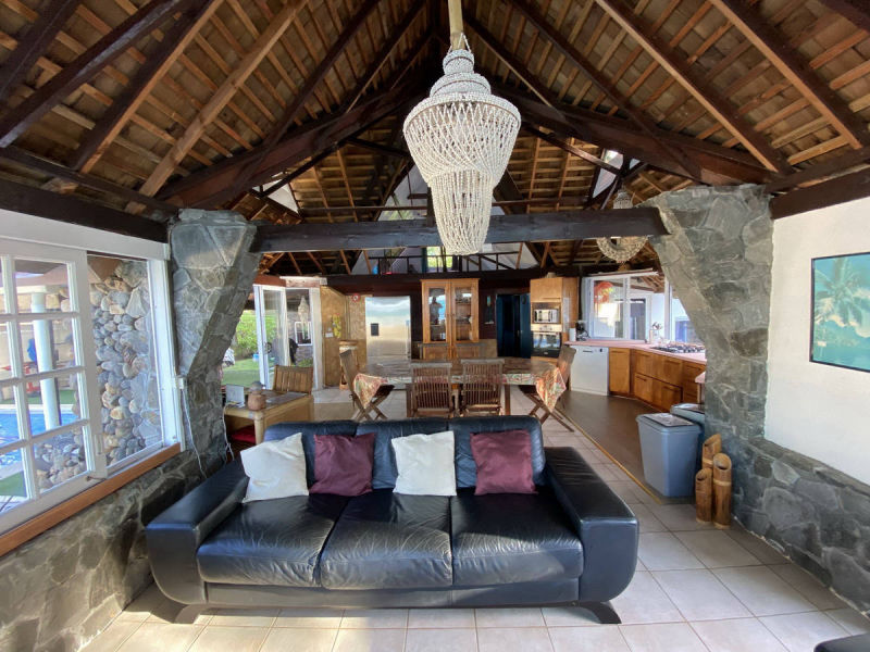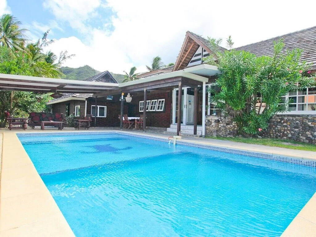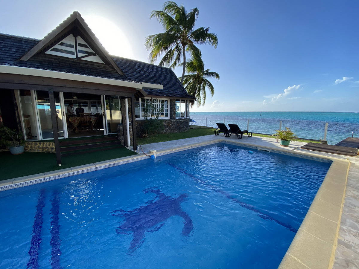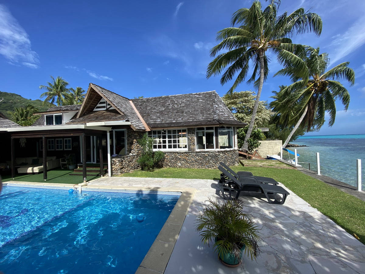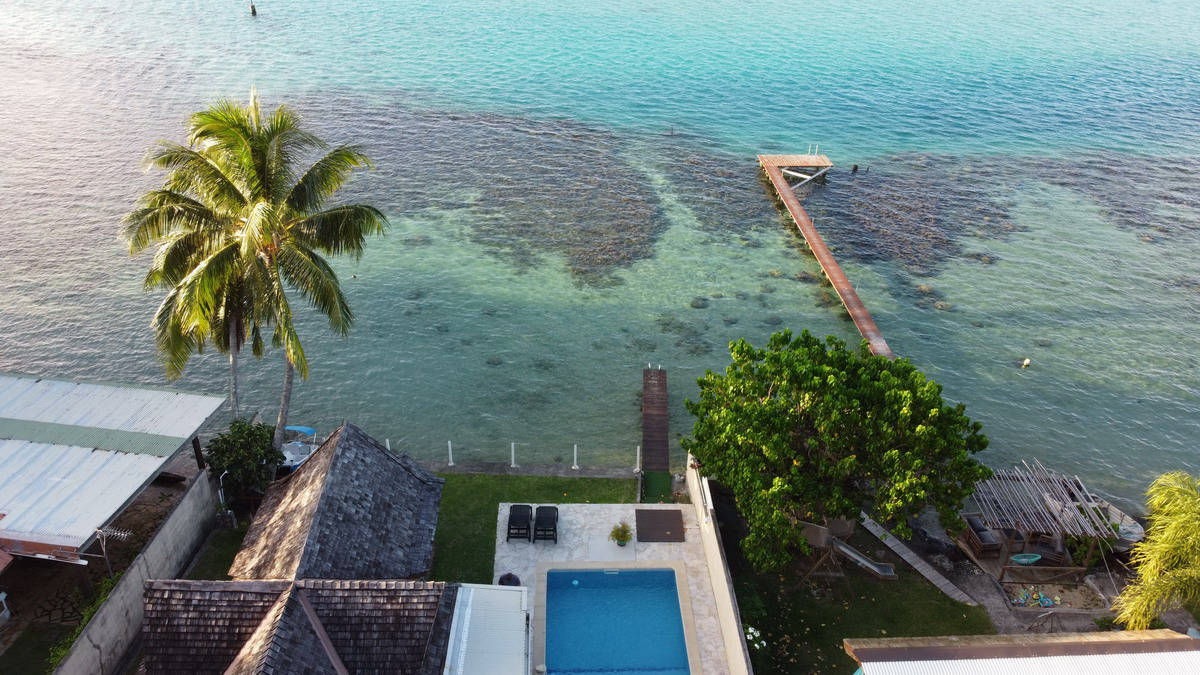 Maison en bord de lagon avec piscine privée en plein centre de Maharepa, village principal de l'île.