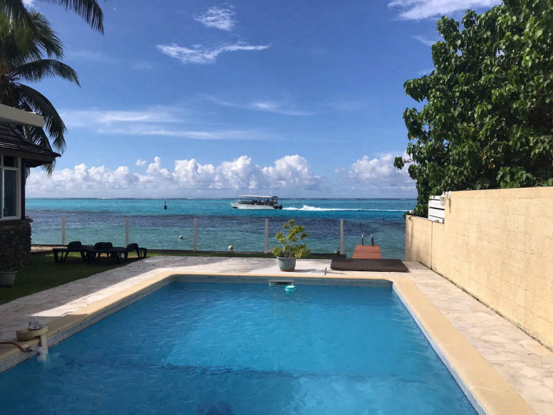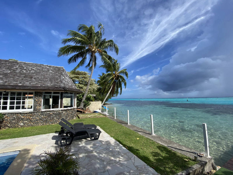 Piscine et terrasse au bord du lagon de Moorea
